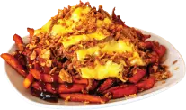 Batata, pulled pork, cheddar fundido, jalapeños o cebolla crujiente y salsa BBQ.